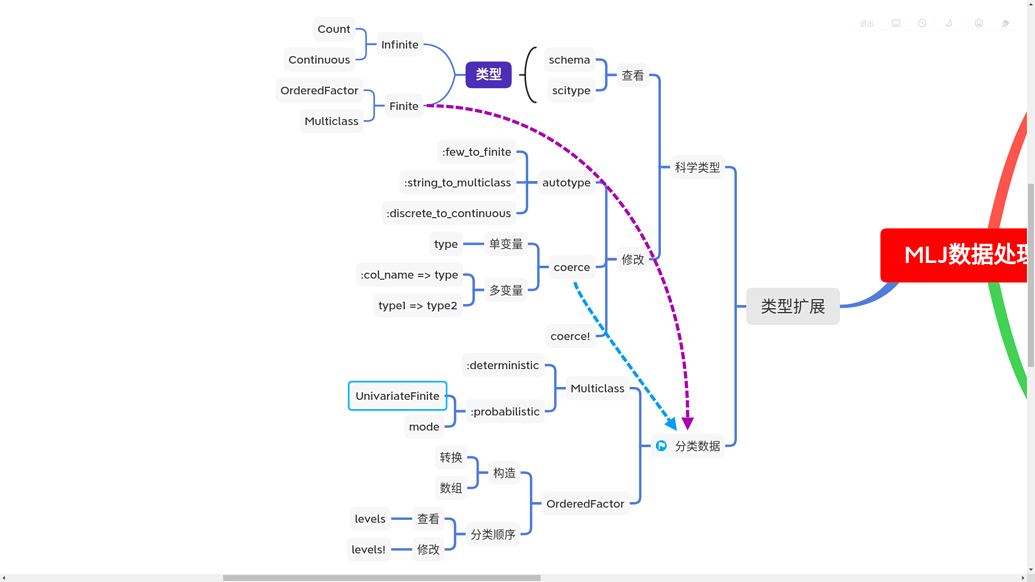 coerce强制转换科学类型 如果按原有的分类顺序来转换nums = categorical([:x, :y:, :z], ordered=true) levels(nums) # 1, 2, 3 coerce(nums, Count) # 1,2,3 coerce(nums, Continuous) # 1.0 2.0 3.0也可以改变分类顺序