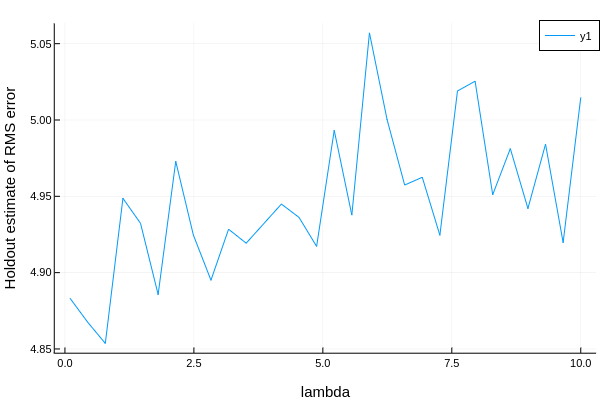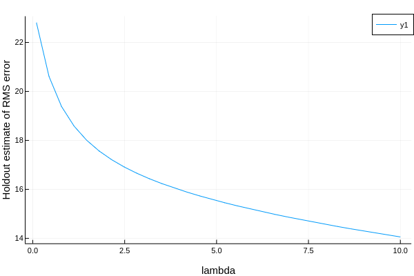 r_lambda = range(model, :lambda, lower = 0.01, upper = 10.0, scale = :linear)默认重采样策略Holdout